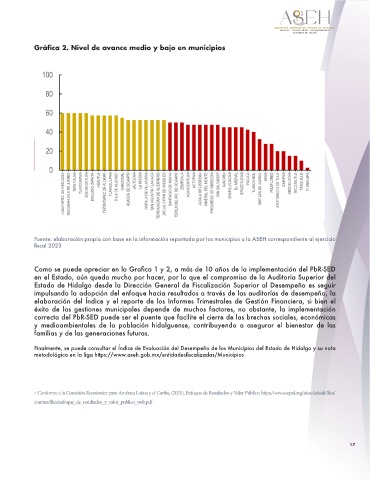 Gráfica 2. Nivel de avance medio y bajo en municipios