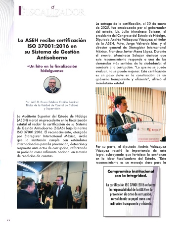 ISO 37001:2016 en de la ASEH, Mtro. Jorge Valverde Islas; y el